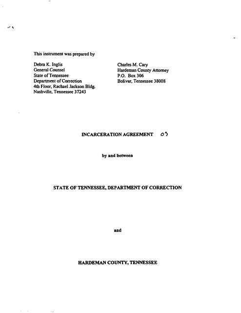 Incarceration Agreement by and Between TN DOC and Hardeman County TN, TN DOC, 1996